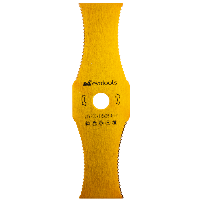 Description:Serrated Brushcutter Blade EvoTools® / D[mm]: 305; di[mm]: 25.4; G[mm]: 1.6; N[t]: 2T