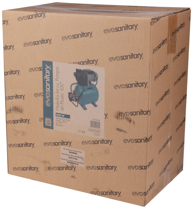 Jet pressure booster set with Plastic Pump 1017 EvoSanitary® is recommended for supplying drinking water in automatic mode from wells or for increasing pressure in systems supplied from the municipal network, for homes and gardens, or for other applications.